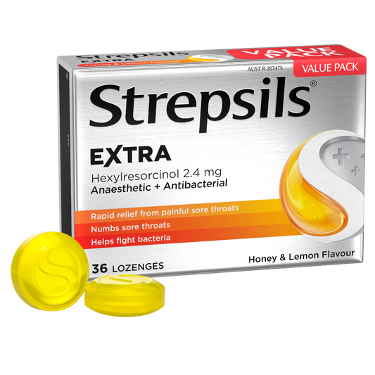 Strepsils Extra Honey and Lemon Fast Numbing Sore Throat Pain Relief with Anaesthetic Lozenges