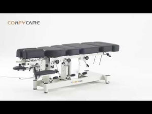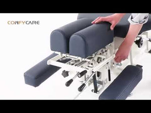 This Chiropractic table is our new premium fixed height table. Very similar to our premium column but is fixed in height. All Cervical, Thoracic, Lumbar and Pelvic drops are operated by foot activation with the tensioning done by hand. This allows easy activation for the practitioner. Overall great value for any clinic.