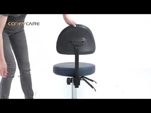 High-quality saddle stool with backrest. It has adjustable seat and backrest angle along with backrest height and angle.